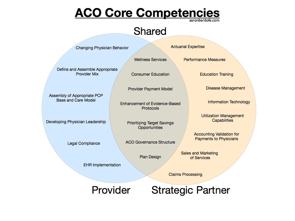 How important are EHRs to ACOs? Necessary? Yes. A major contributor? No. Take a look at the 22 core competencies listed above in the diagram. The EHR implementation is 1 of those 22. How much did you or are you spending on your EHR implementation? Let’s say the rest of those competencies only cost 1/2 as much as your EHR implementation which have been known to cost millions of dollars (billions even!). Multiply that number by 22 to get the total cost of achieving ACO status. I know the numbers are arbitrary and there is some variance in the cost of the other competencies, but the point is that after you’ve implemented you’re EHR, you’re going to need at least a few million lying around to go after the ACO goal. Yikes!