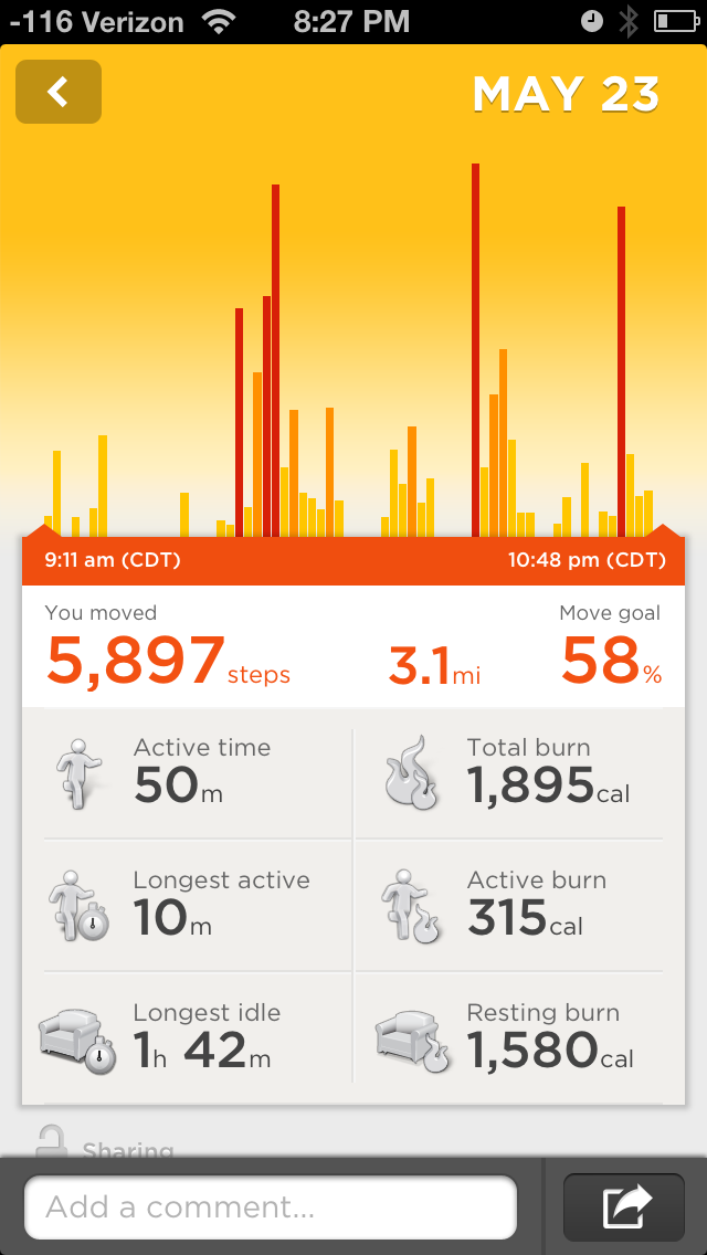Ok, so after reading all of that, here’s something that may surprise you. I don’t wear it anymore (Yes, my social life has improved). I am cognizant now of the need to get up and move around throughout the day and I do so. I know that I have to get a decent run in after work if I’ve been sitting most of the day in order to meet my activity quota. And while I have switched back to the alarm on my phone (because I don’t bring the wristband when I travel), I’ve found I generally wake up before it when I hit my light sleep pattern rendering it unnecessary. Mission accomplished, as they say. I know gadget companies want you to use their devices forever, but I think the best use of them is to target specific habits and change them. Once that is done, the device is no longer needed. Now, if I fall back onto old habits, I’m certainly going to put that wristband back on, but I don’t need it to be a constant part of my life. Targeted applications of devices like this can be of great benefit to the general well-being of the public as long as they aren’t thought of as only being used by fitness geeks.