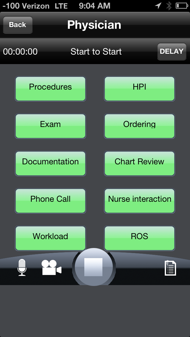 - Perform the time study. This is the mind-numbing part. Stay vigilant for the hours this is being performed to accurately push the category button when the observed changes tasks. It’s monkey work, but can actually take some serious decision making power during that crucial second you have to decide which category button to push and when. I entertain myself during the period between pushing buttons by pretending I’m a medical student during the patient exams and learn how to be a doctor.